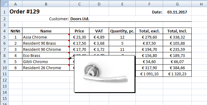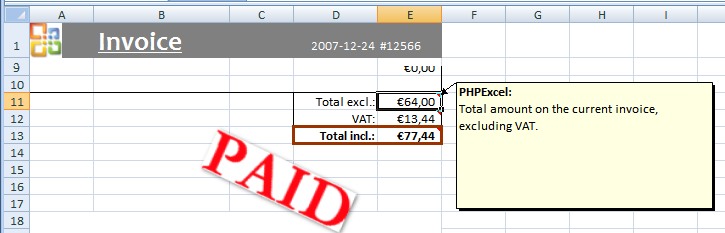 ->setCellValue('F2', '=TOTAL_INCLUDING_VAT');